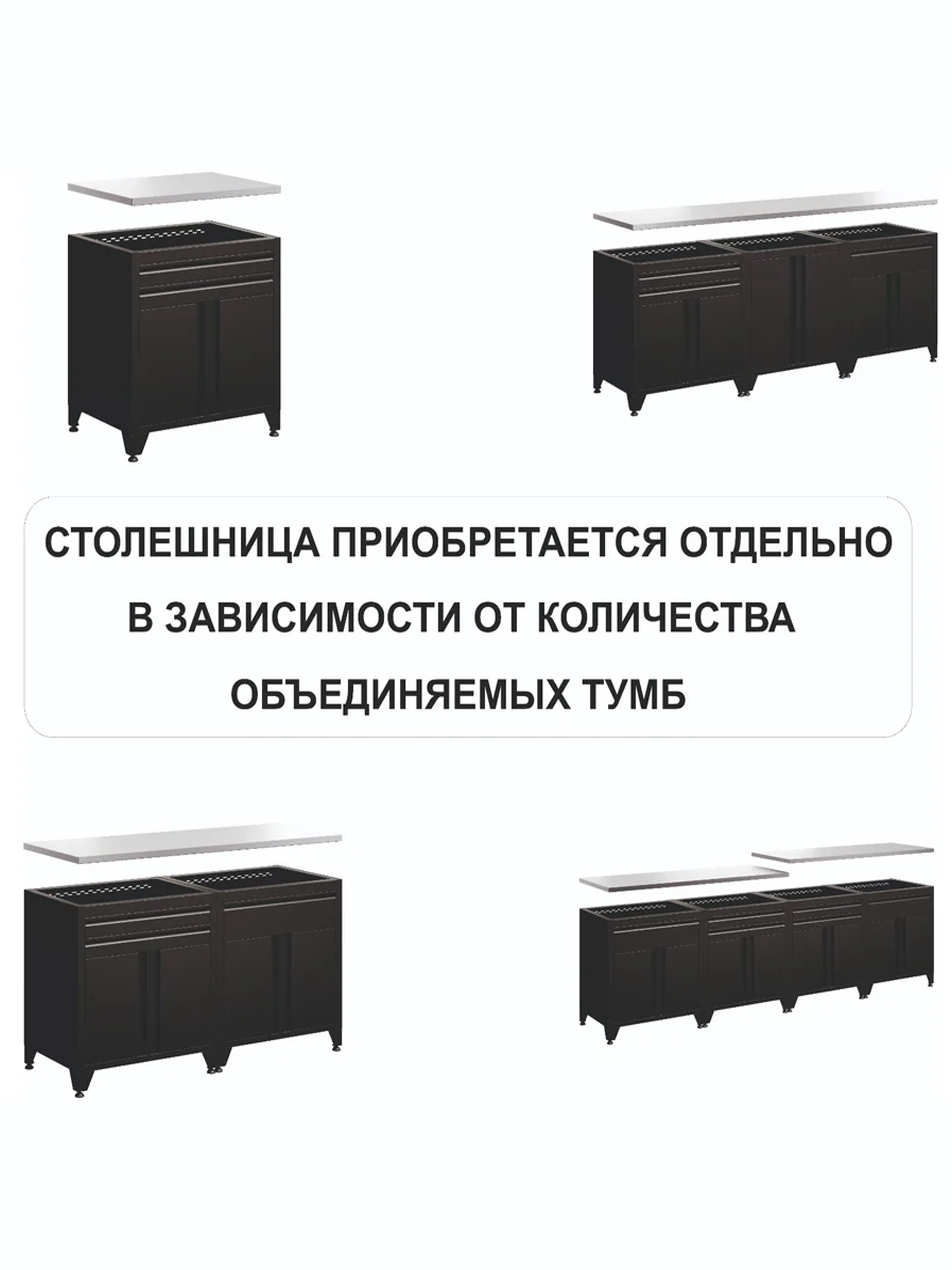 Столешницу можно приобрести отдельно в зависимости от количества модулей, которые вы планируете поставить в ряд: