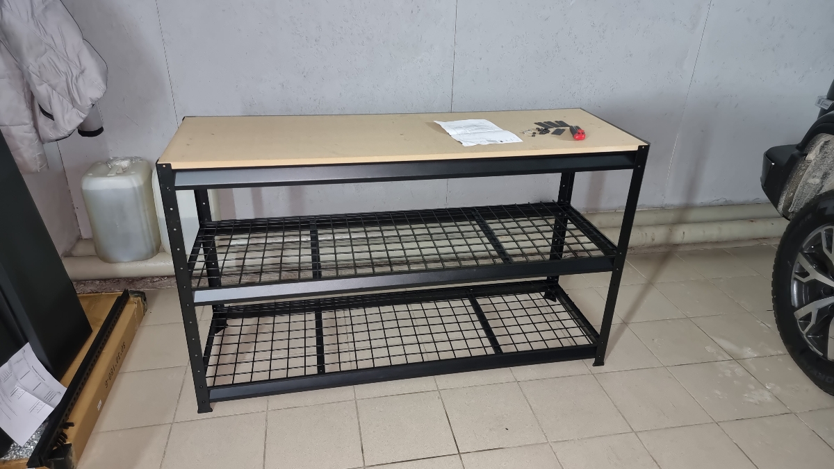 верстак‑стеллаж, регулируемый верстак, верстак с перфорацией, верстак для мастерской, верстак из МДФ, металлический верстак, разборный верстак, верстак с полками, организация рабочего места, верстак для цеха.