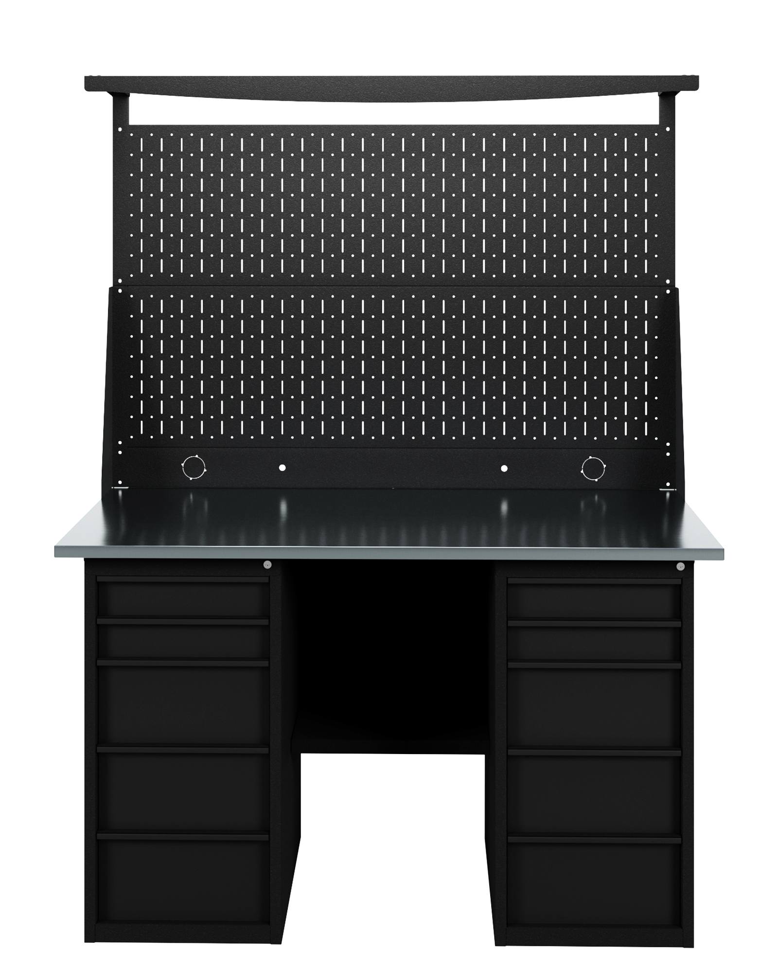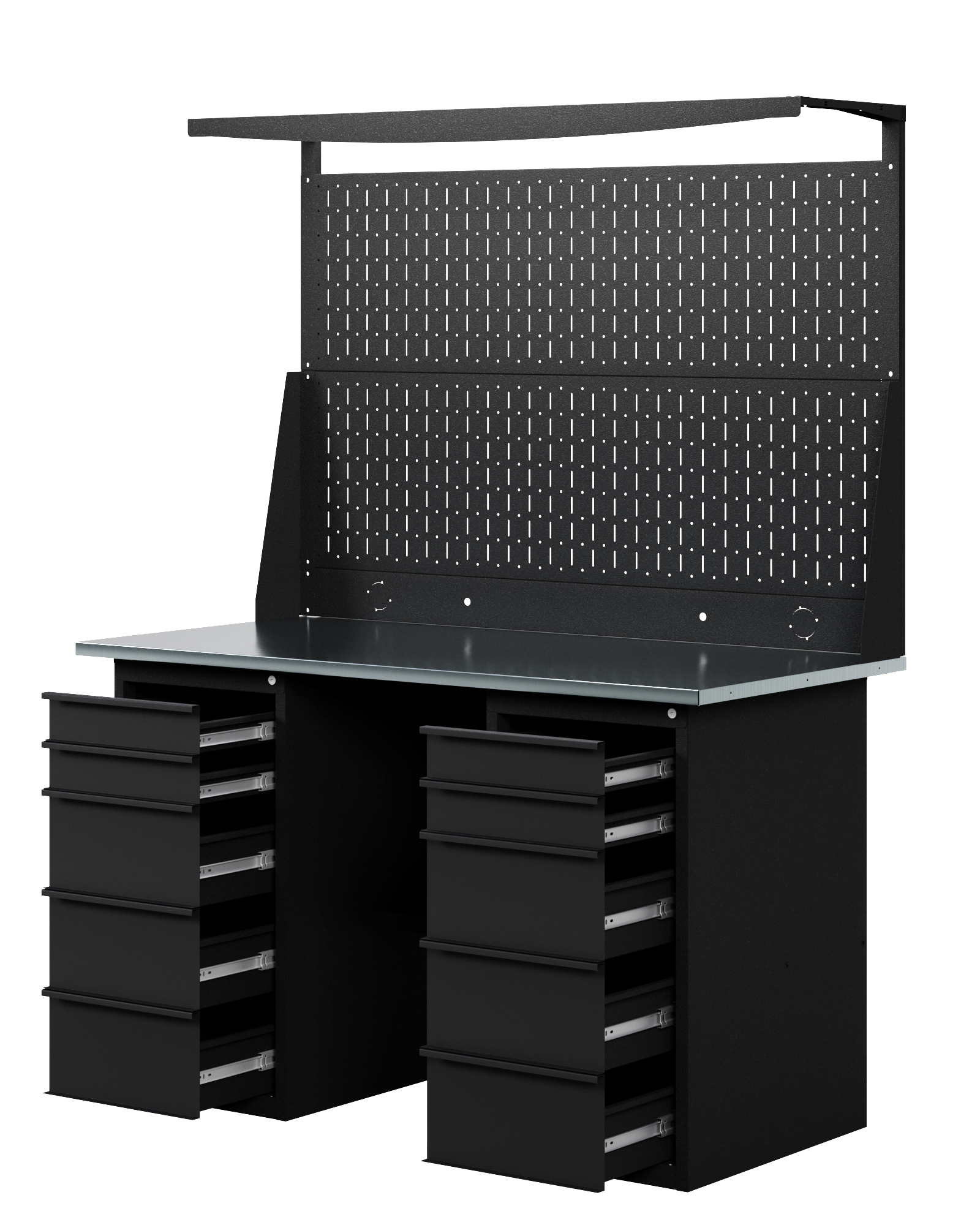 GREENBERG BLACK Верстак-стол с перфопанелью двойной с двумя ящиками 1400мм VERSTAK_BLACK_Y2_Р2_1400