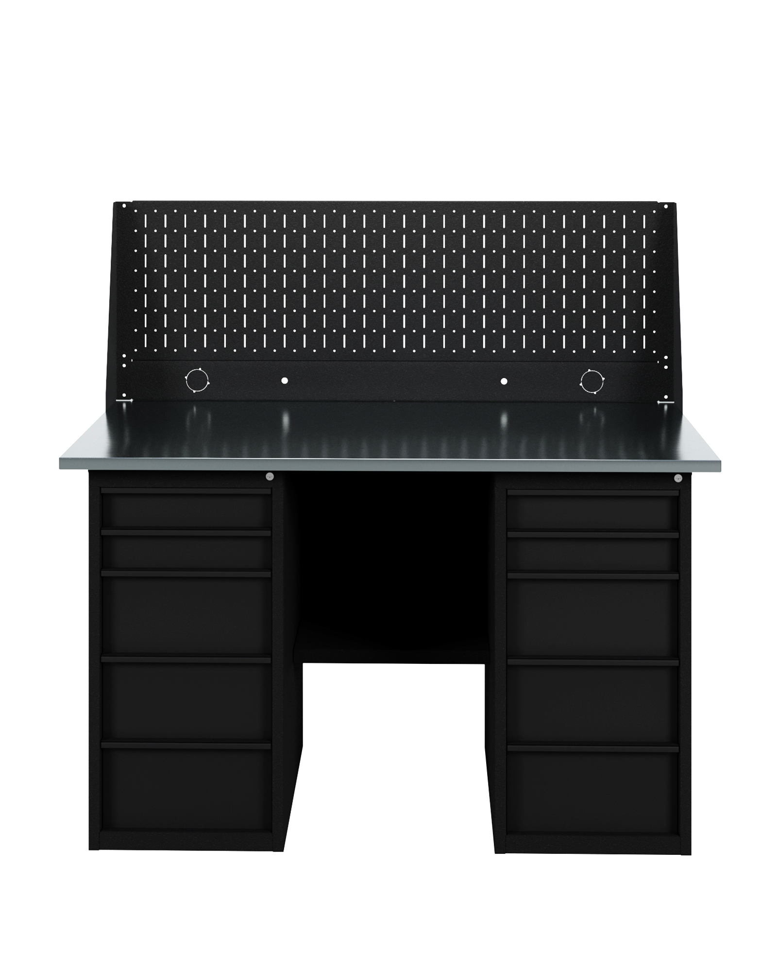 GREENBERG BLACK Верстак-стол с перфопанелью одинарной с двумя ящиками 1400мм VERSTAK_BLACK_Y2_Р1_1400
