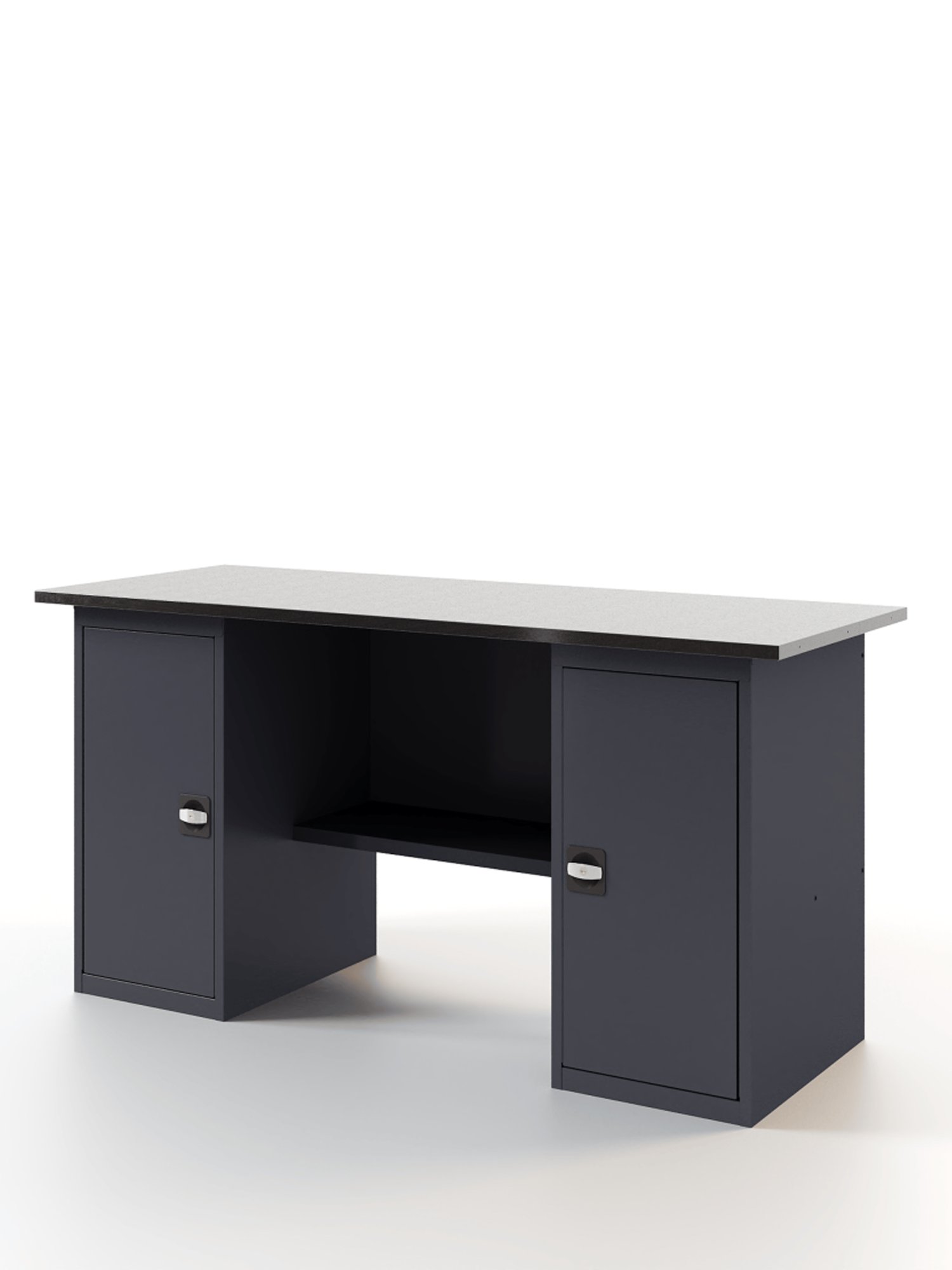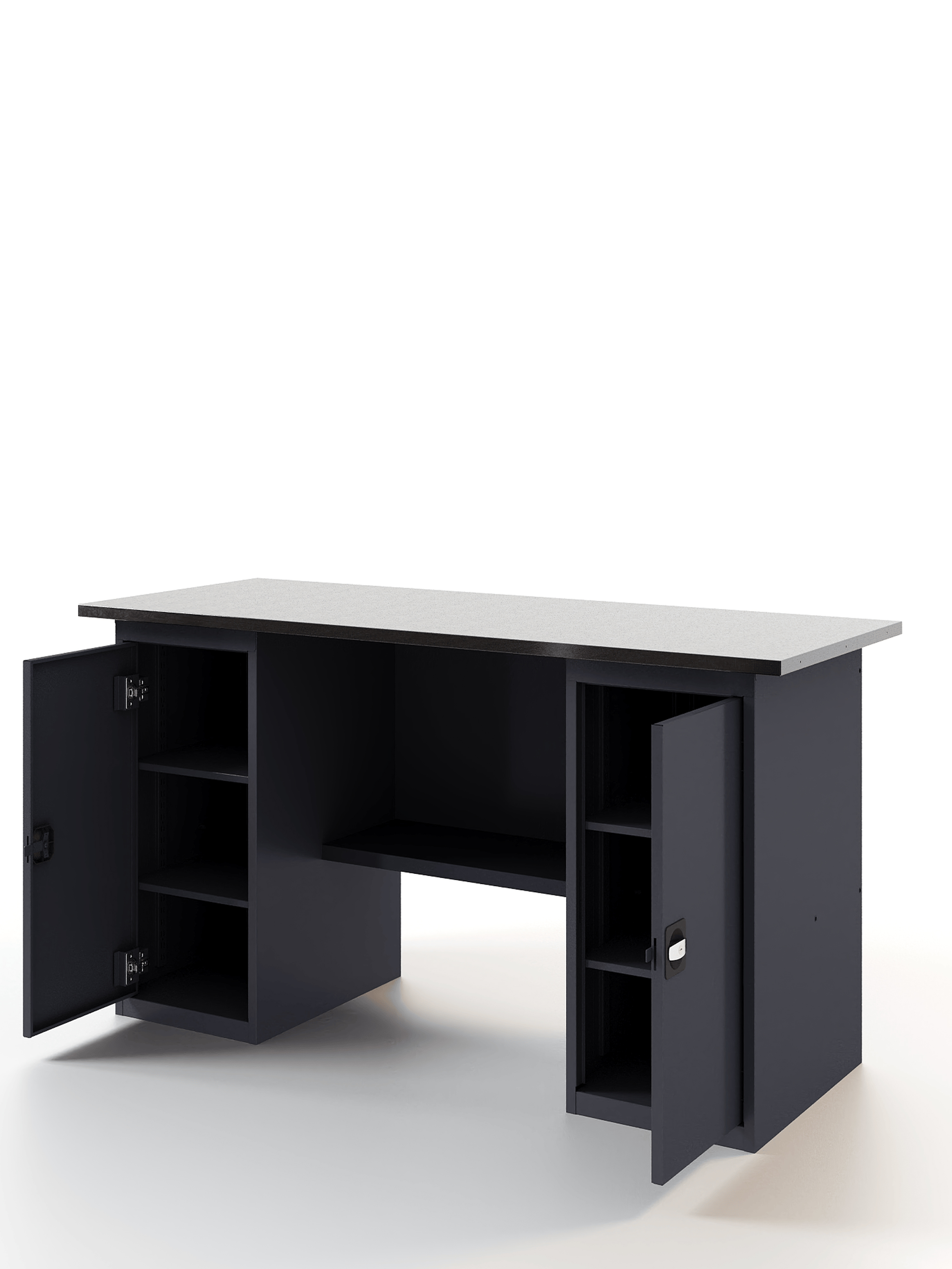 Основой верстака служит надежная столешница, выполненная из МДФ плиты толщиной 24 мм, которая закрыта коробом из оцинкованного листа толщиной 1,2 мм. Такое решение обеспечивает исключительную прочность конструкции. Столешница имеет идеально ровную поверхность без каких-либо выступающих элементов (болтов, заклепок), что создает максимальный комфорт при работе.