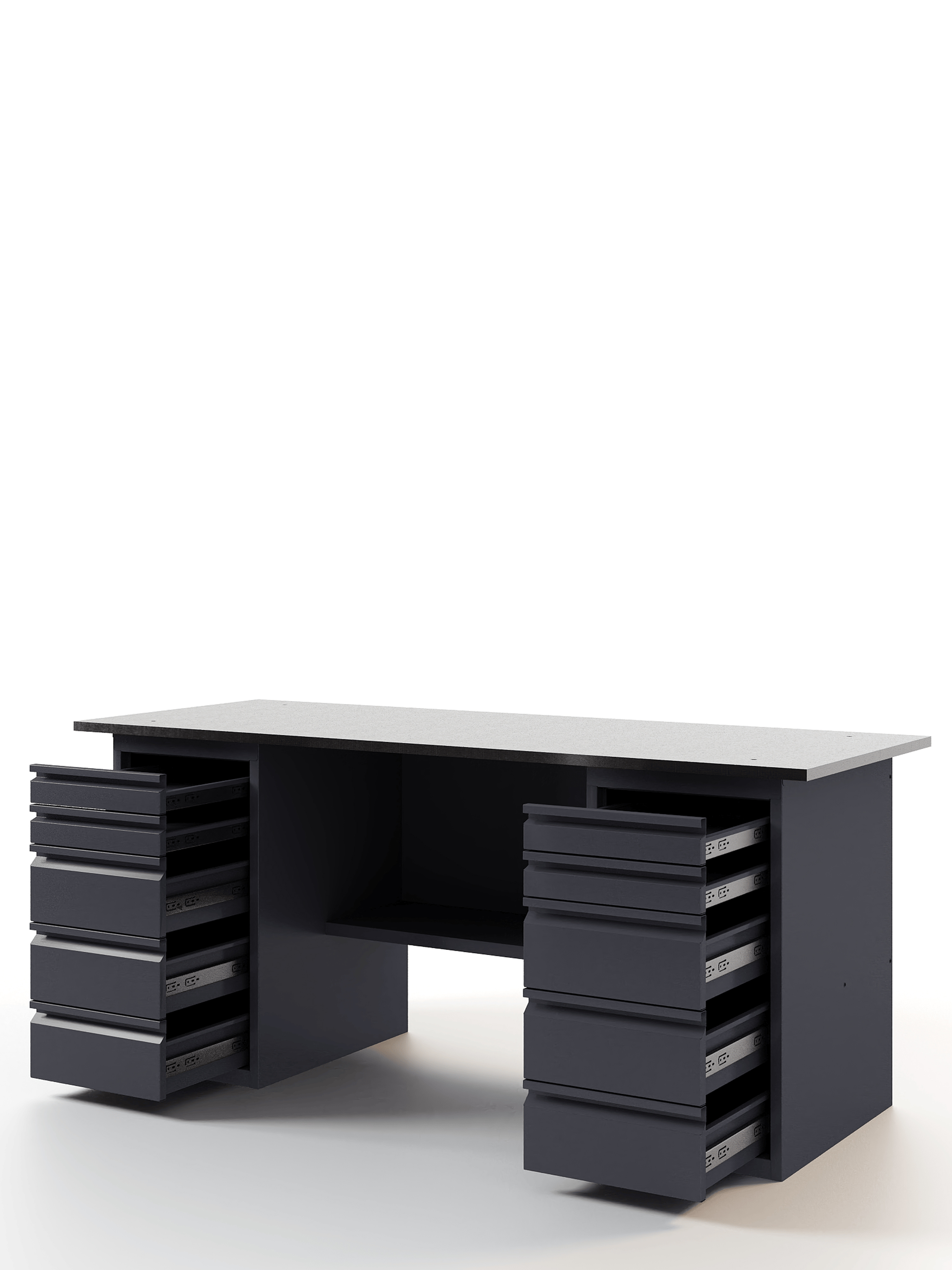 Основой верстака служит надежная столешница, выполненная из МДФ плиты толщиной 24 мм, которая закрыта коробом из оцинкованного листа толщиной 1,2 мм. Такое решение обеспечивает исключительную прочность конструкции. Столешница имеет идеально ровную поверхность без каких-либо выступающих элементов (болтов, заклепок), что создает максимальный комфорт при работе.