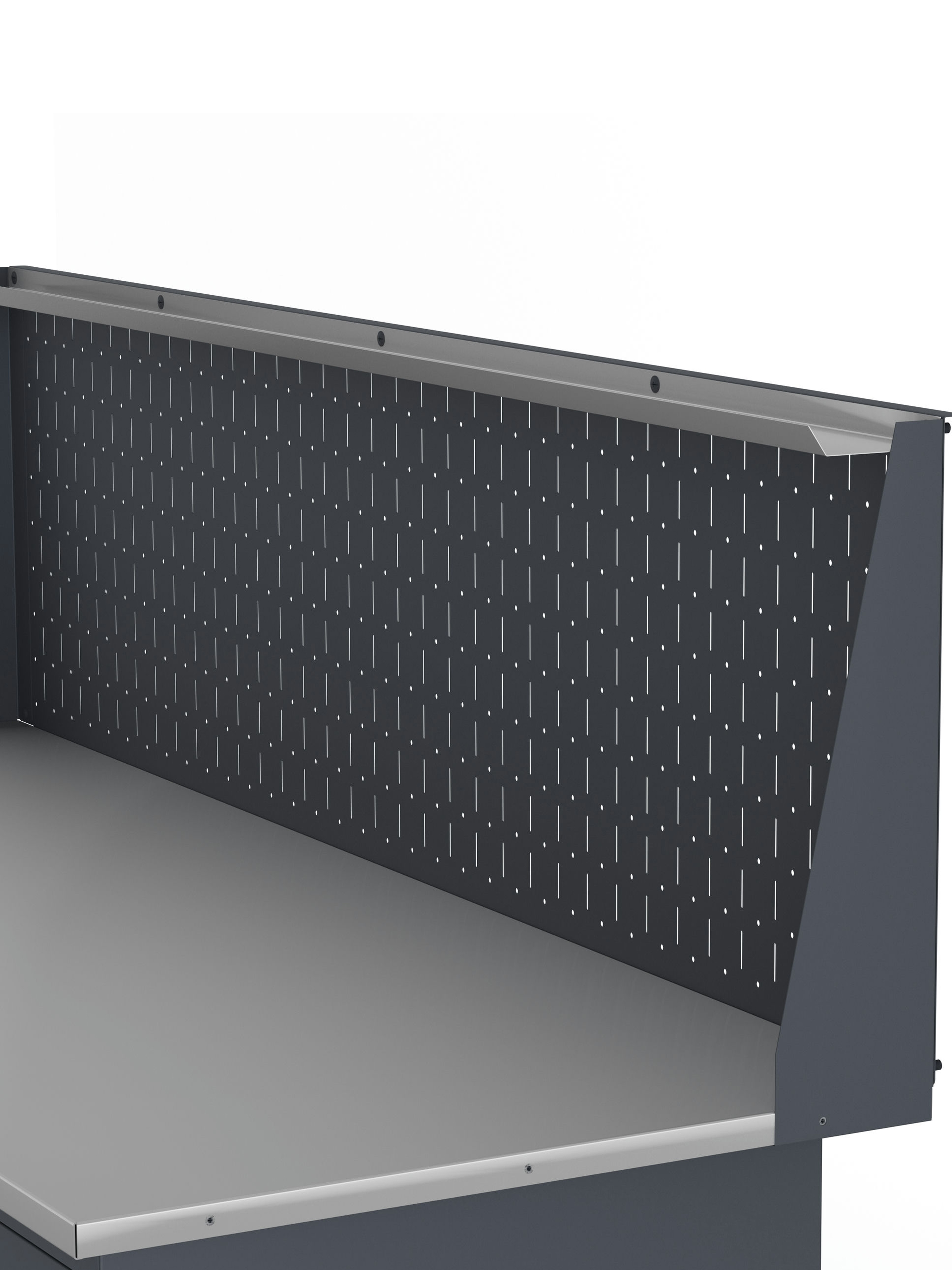 Основой верстака служит надежная столешница, выполненная из МДФ плиты толщиной 24 мм, которая закрыта коробом из оцинкованного листа толщиной 1,2 мм. Такое решение обеспечивает исключительную прочность конструкции. Столешница имеет идеально ровную поверхность без каких-либо выступающих элементов (болтов, заклепок), что создает максимальный комфорт при работе.