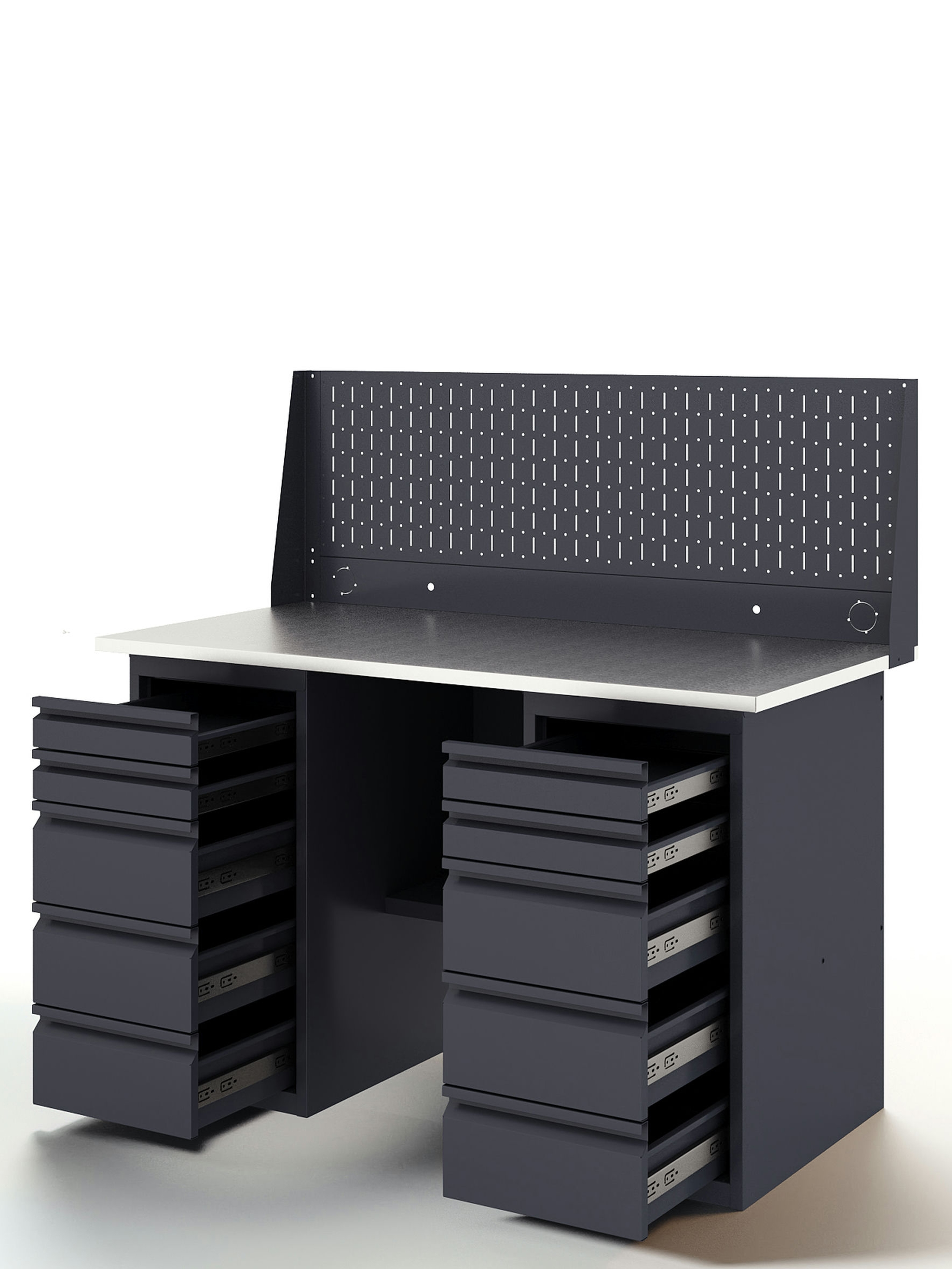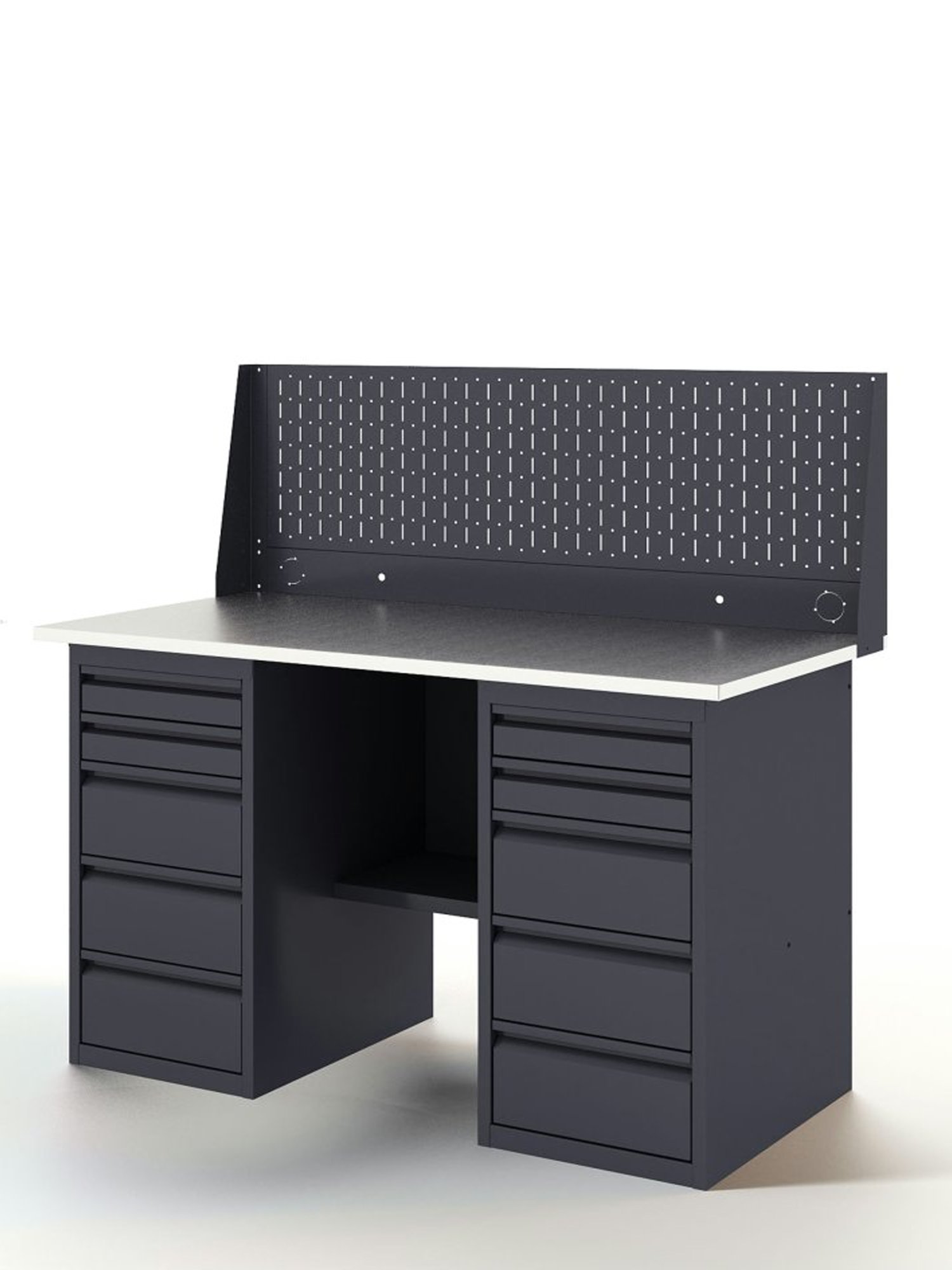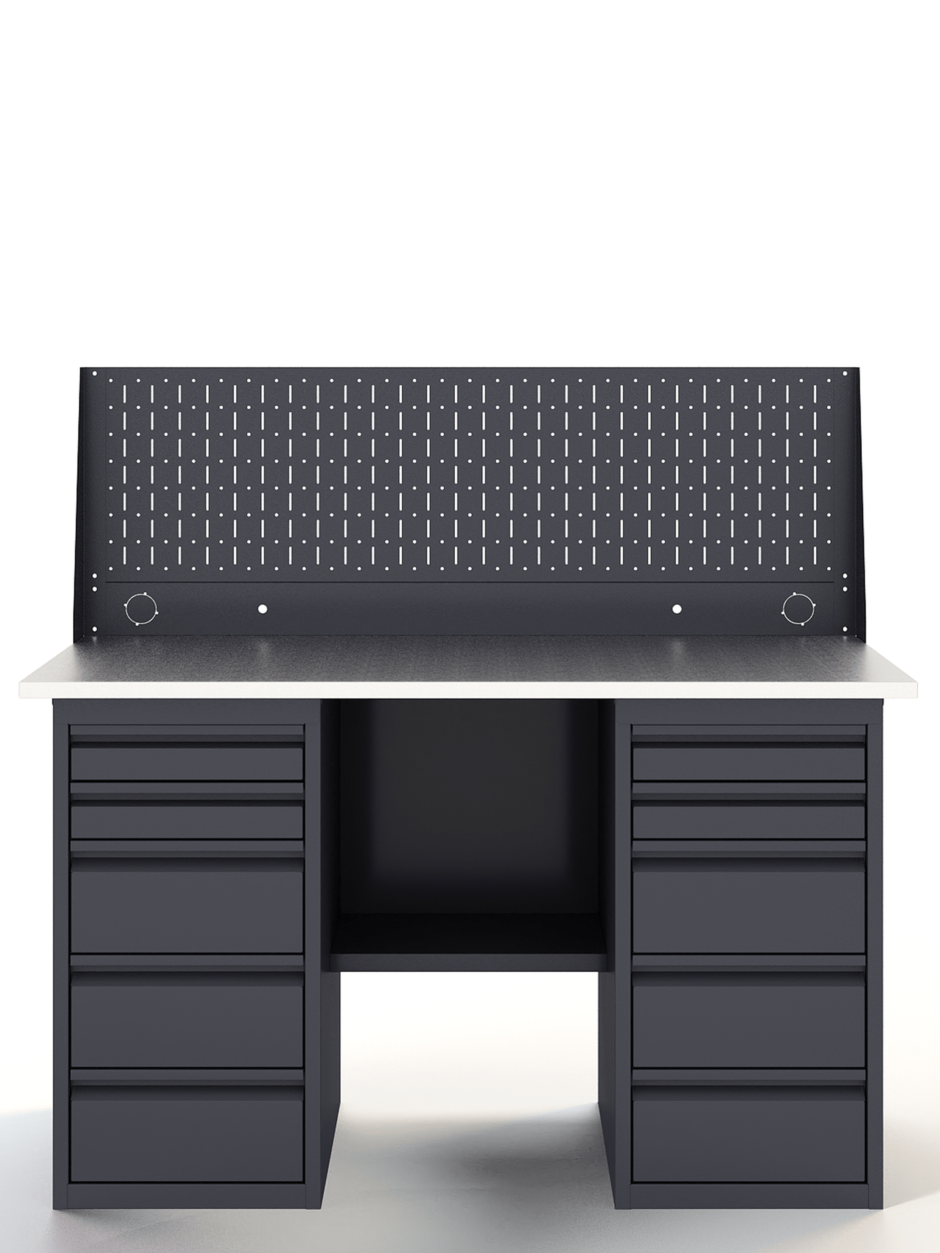 Профессиональный верстак двухтумбовый с перфопанелью одинарной