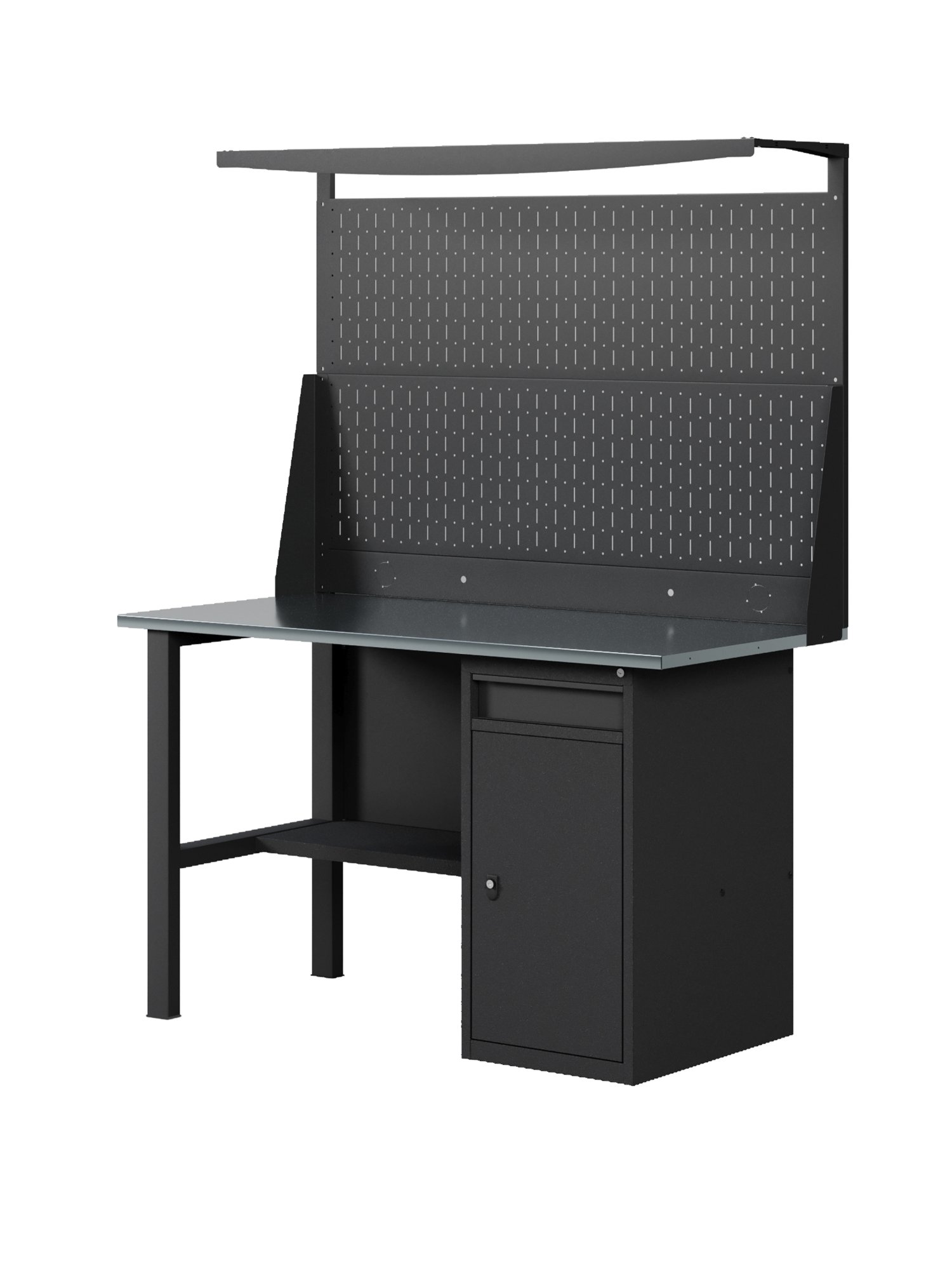 GREENBERG BLACK Верстак-стол с перфопанелью двойной с тумбой/ящик 1200мм VERSTAK_BLACK_W1_P2_1200