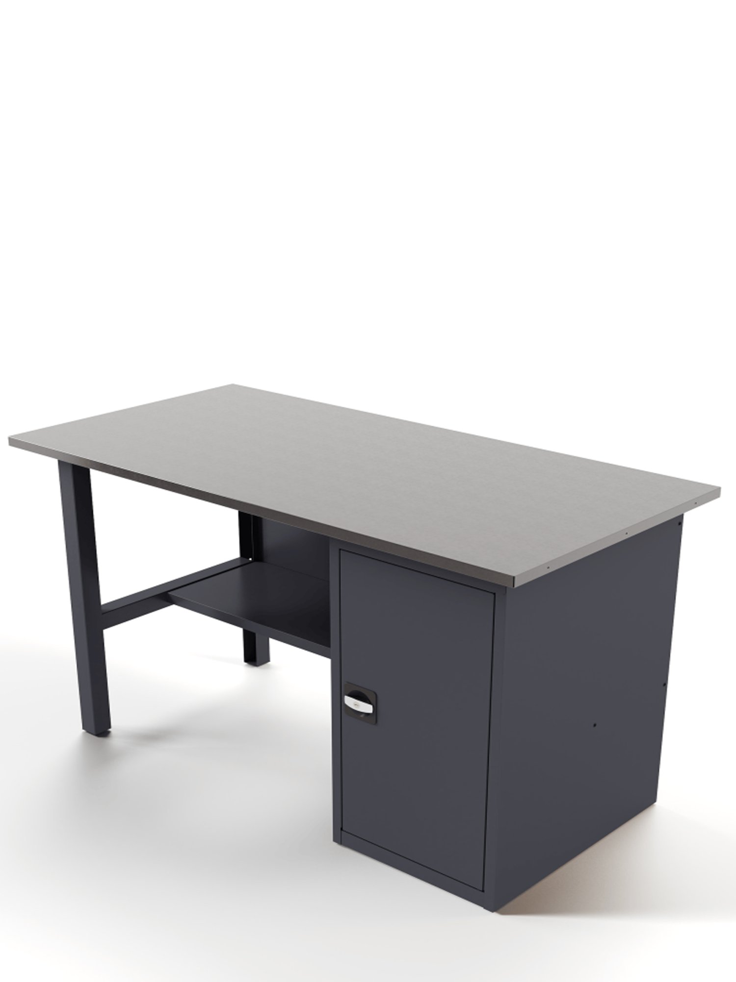 Верстак-стол представляет собой профессиональное рабочее место для выполнения слесарных и столярных работ в производственных помещениях и мастерских. Его конструкция сочетает в себе прочность и удобство использования.