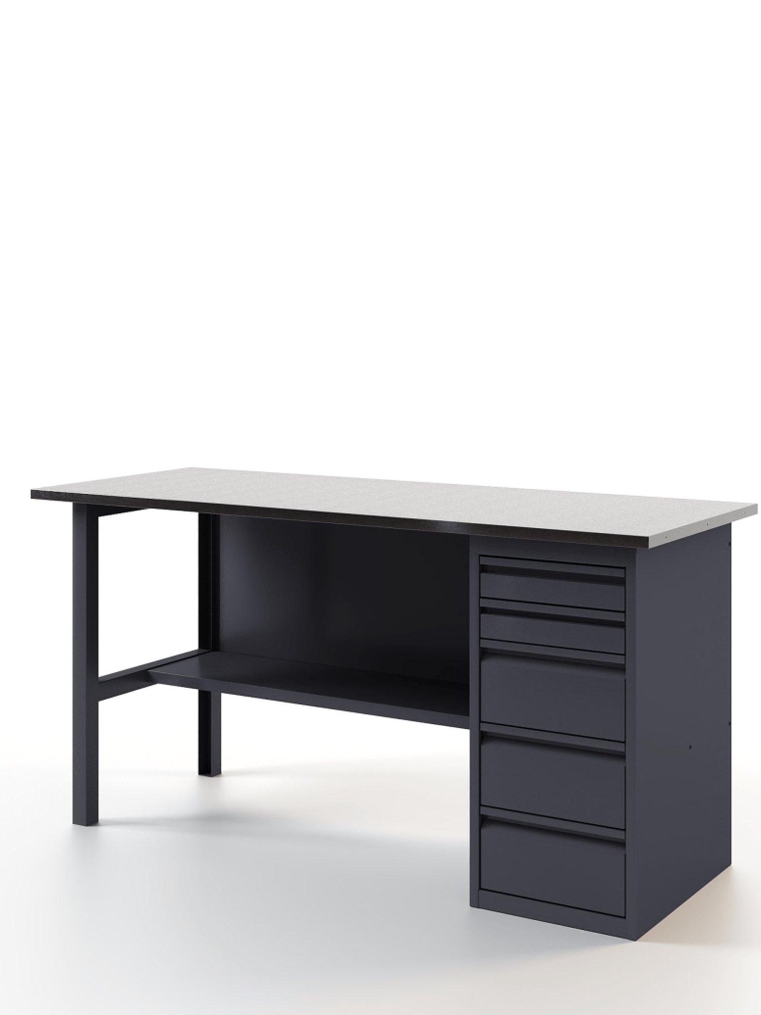 Верстак-стол представляет собой профессиональное рабочее место для выполнения слесарных и столярных работ в производственных помещениях и мастерских. Его конструкция сочетает в себе прочность и удобство использования.