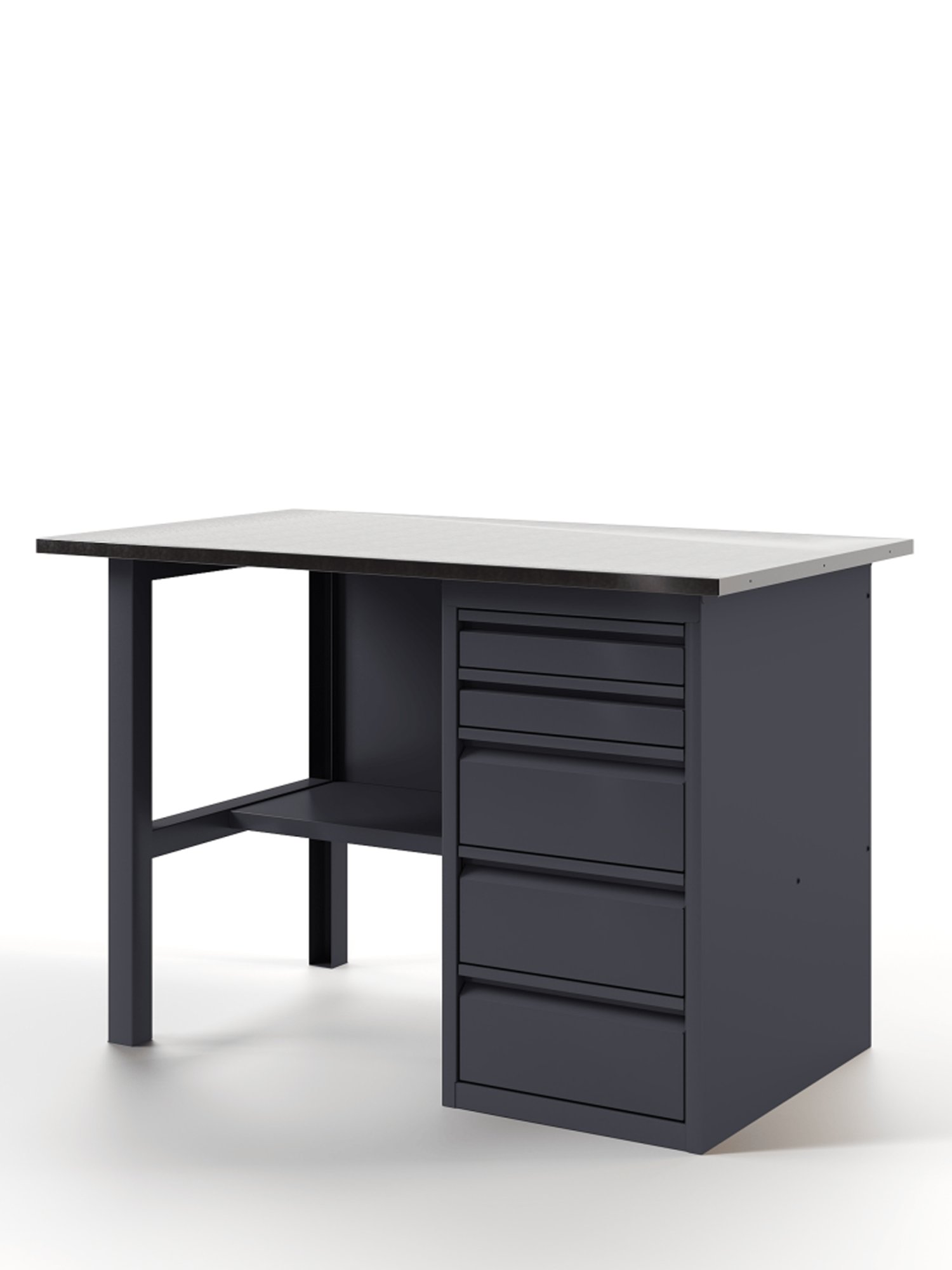 Верстак-стол представляет собой профессиональное рабочее место для выполнения слесарных и столярных работ в производственных помещениях и мастерских. Его конструкция сочетает в себе прочность и удобство использования.