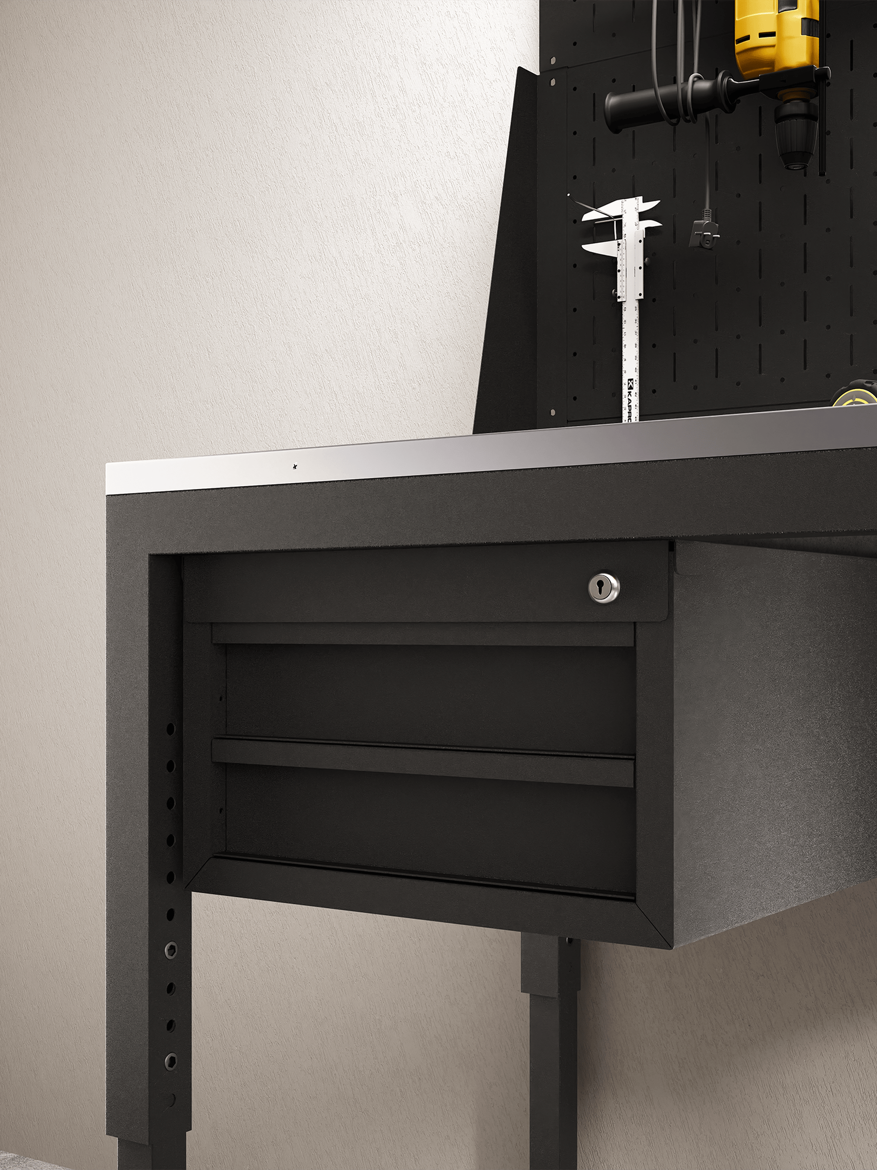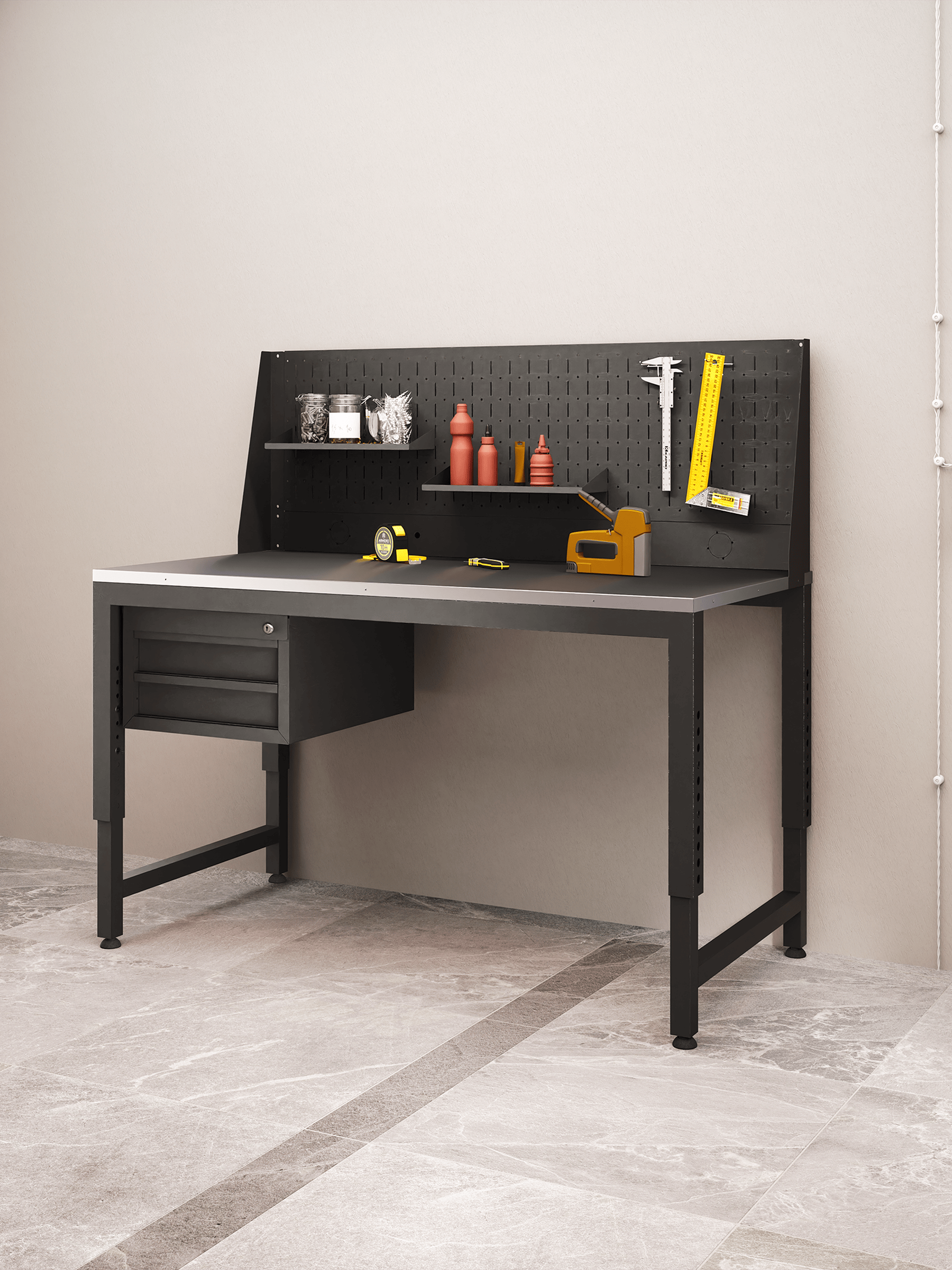 Верстак-стол регулируемый с тумбой и перфопанелью одинарной 1200х600мм VERSTAK_REG_T_P1_1200х600