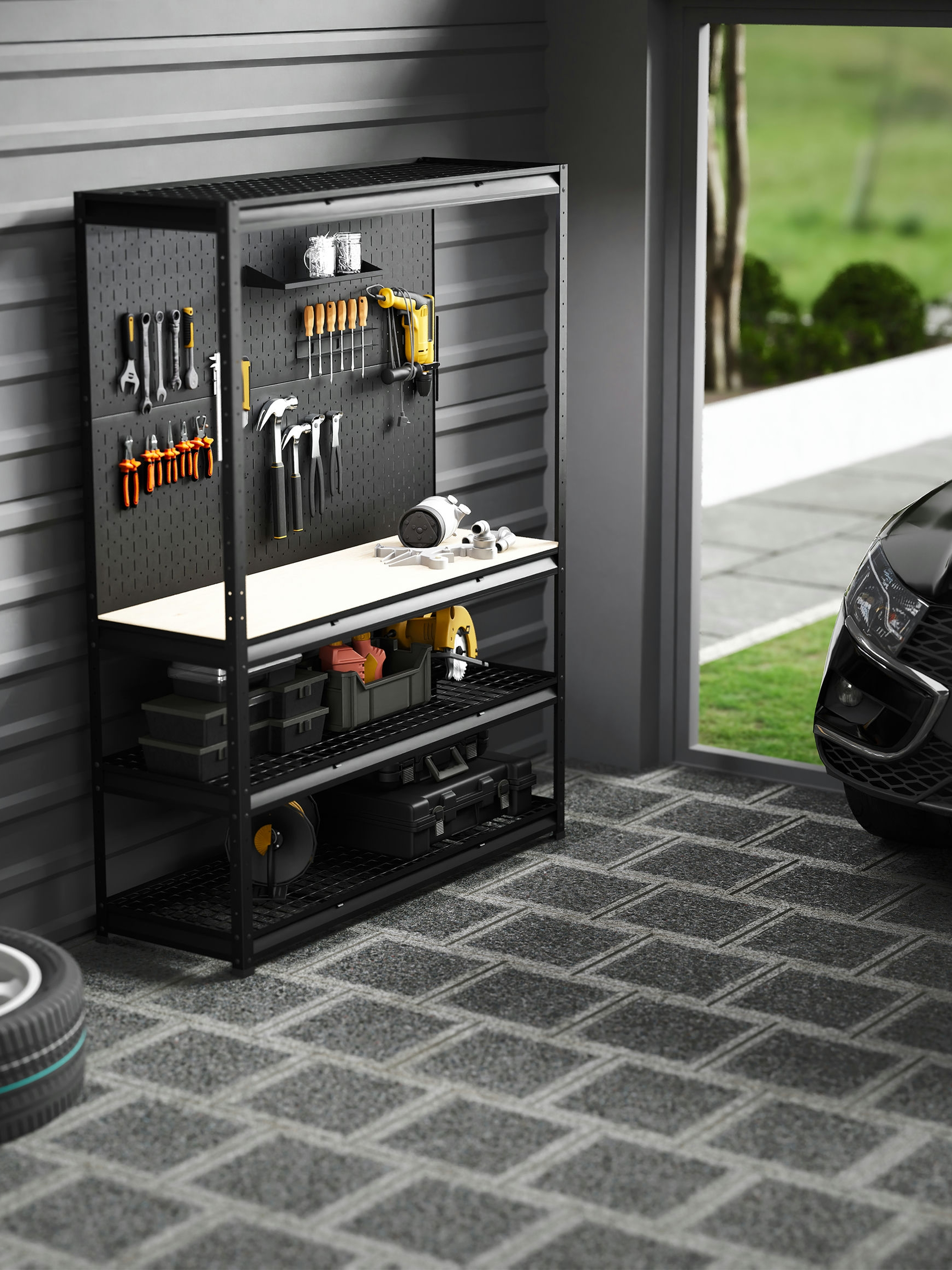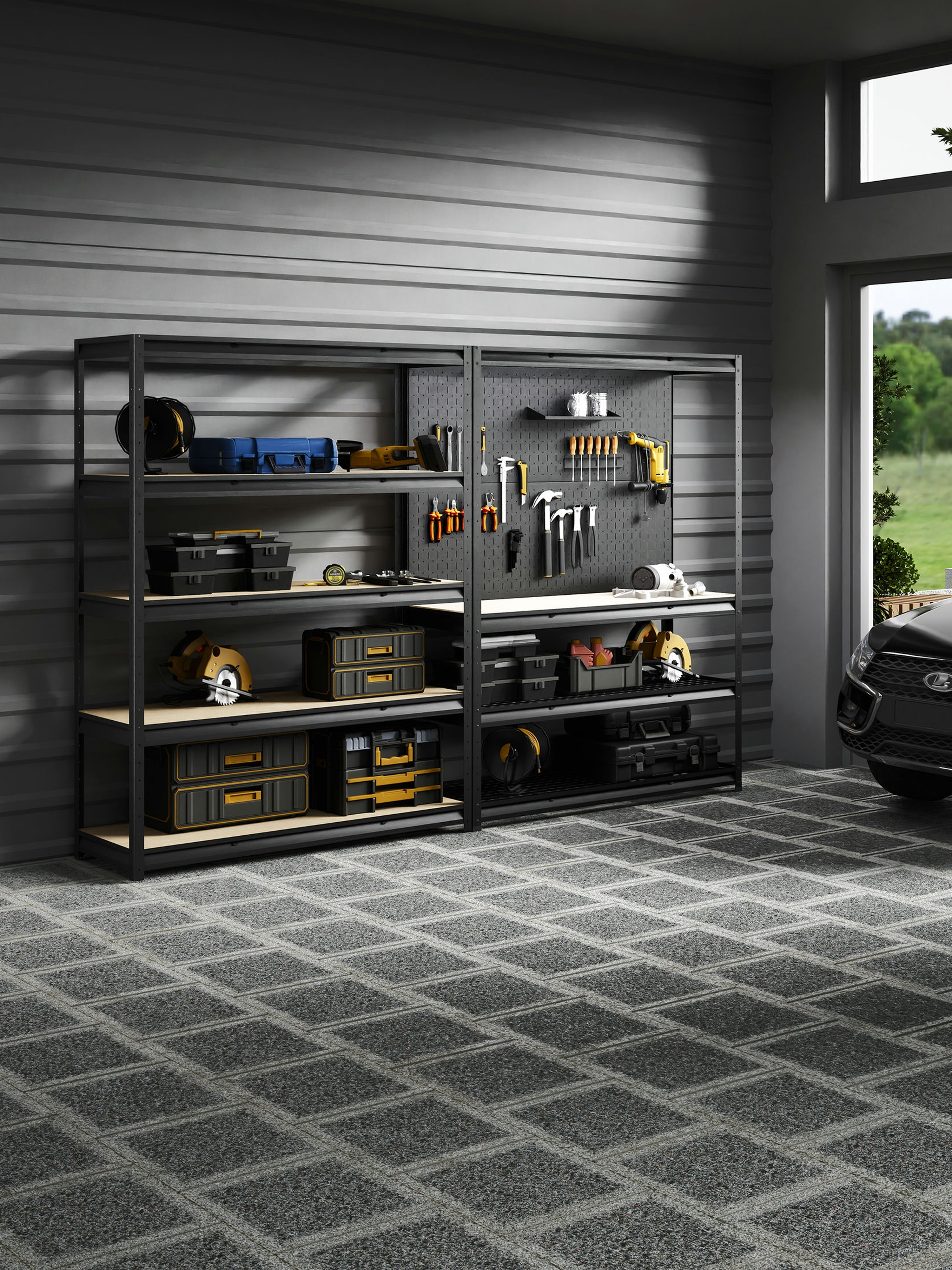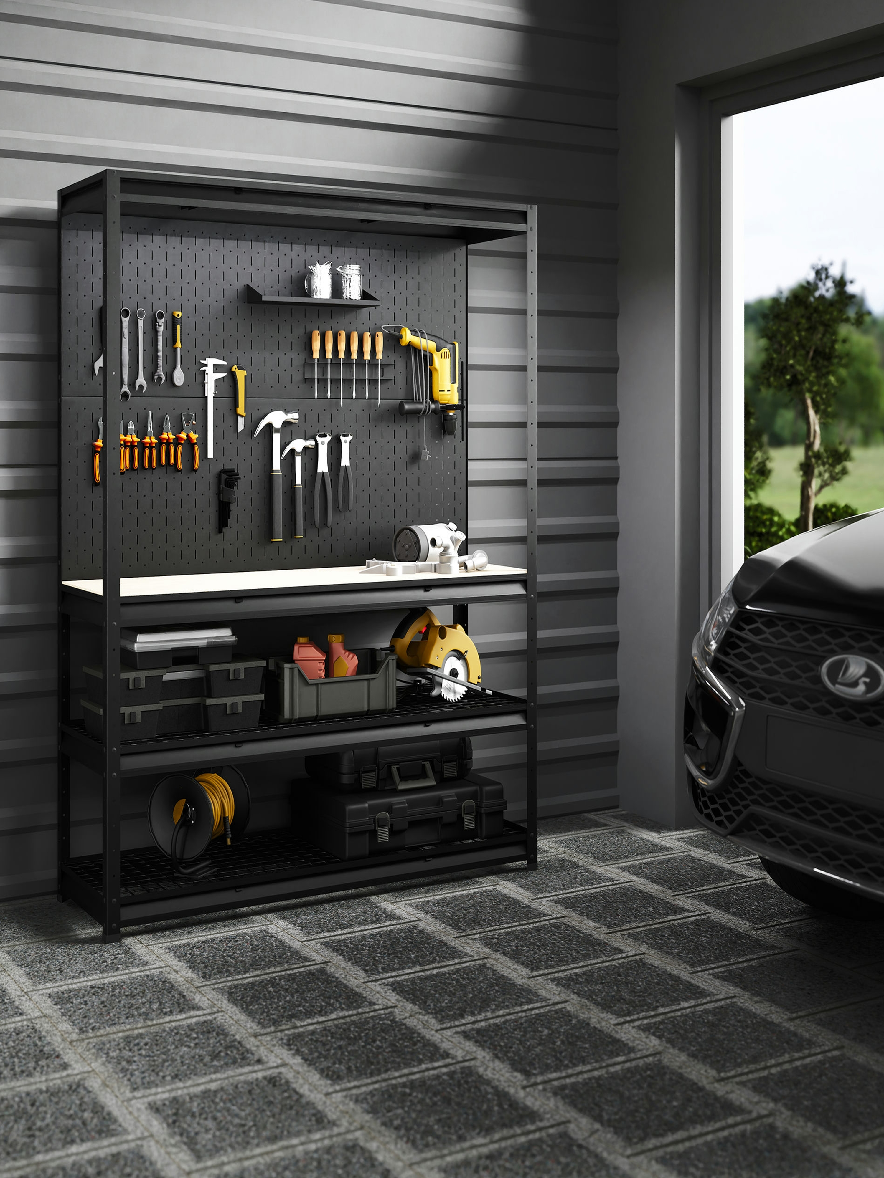Стеллаж подходит для организации рабочего пространства в сборочных цехах, на производственных площадках, в гараже или мастерской.