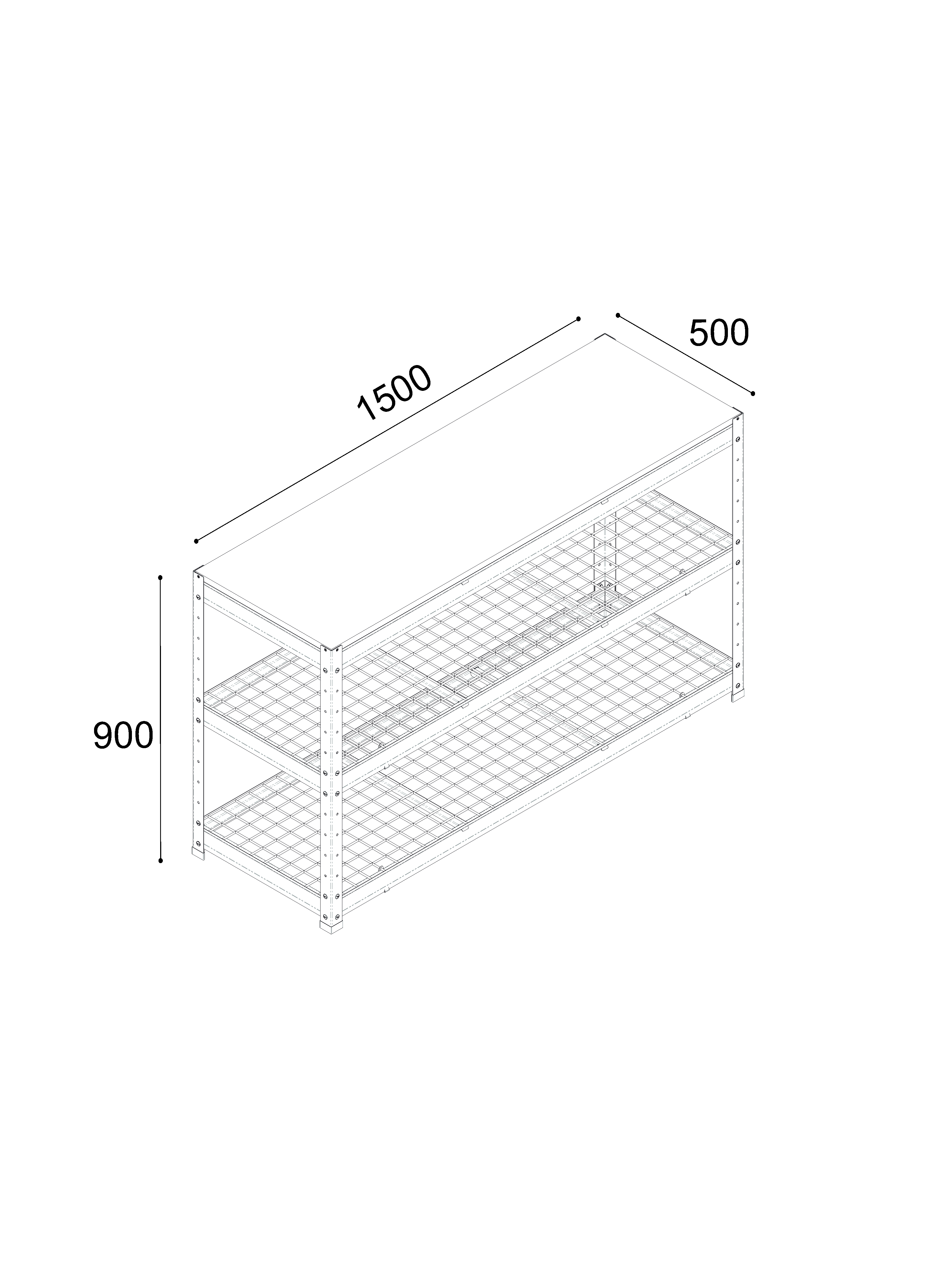Материал полок: металлическая сетка 50×50 мм (пруток 5 мм).