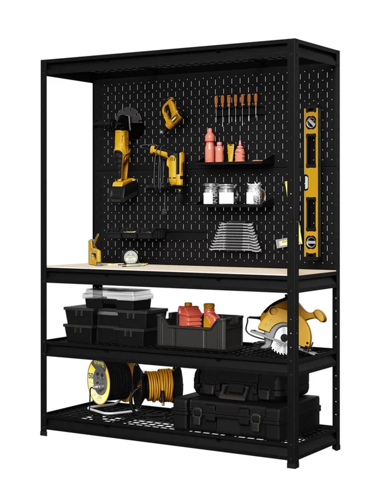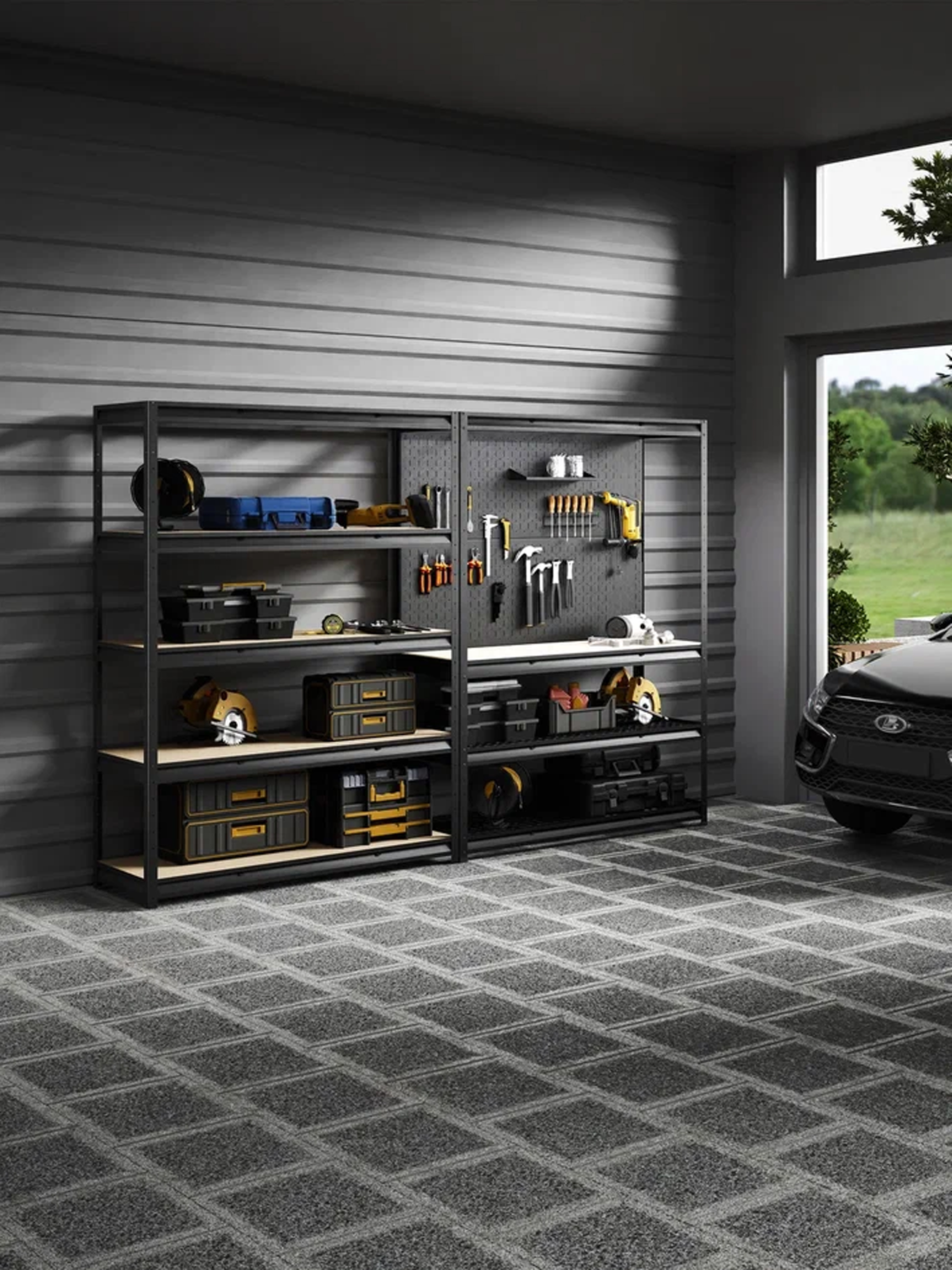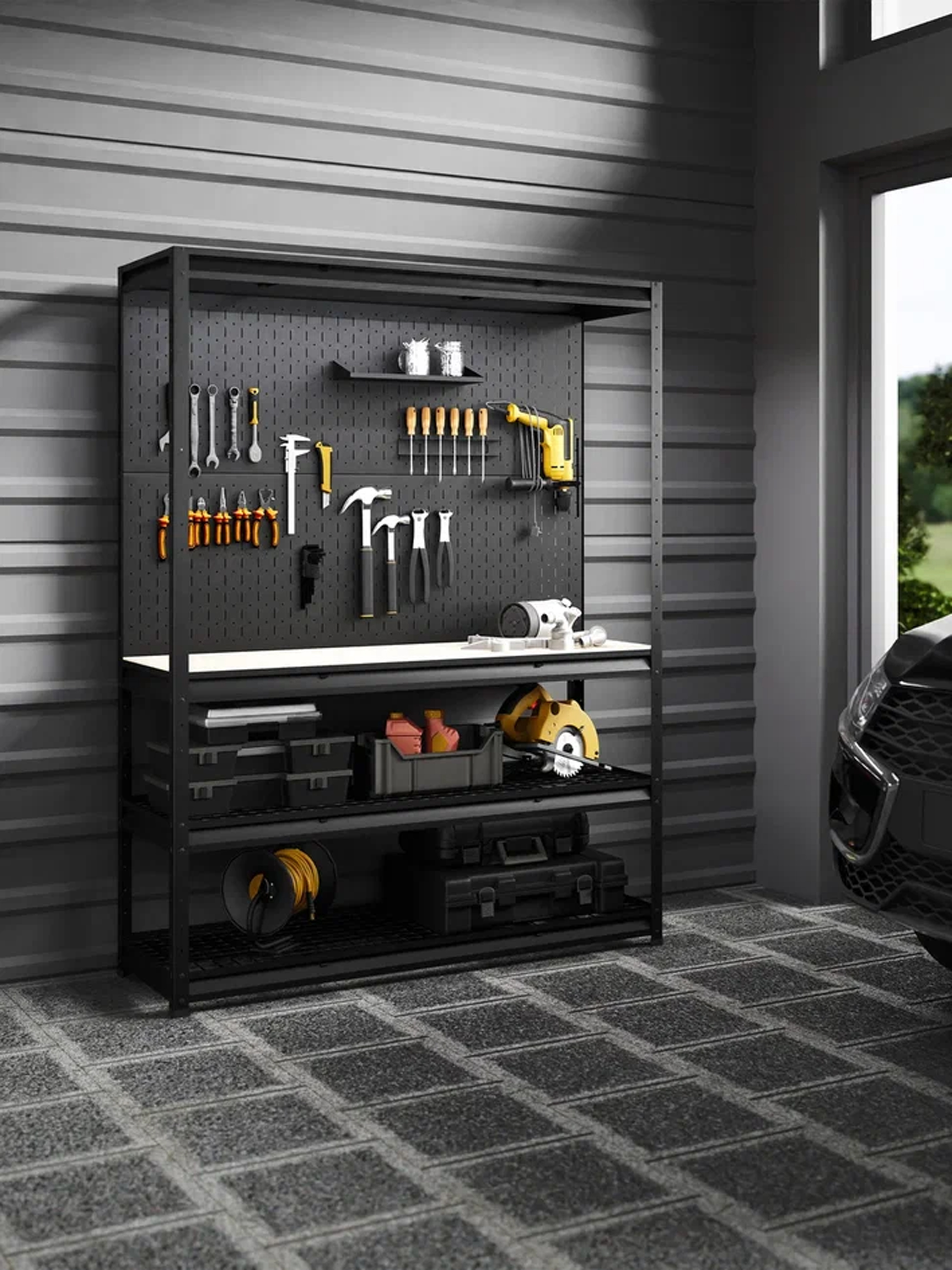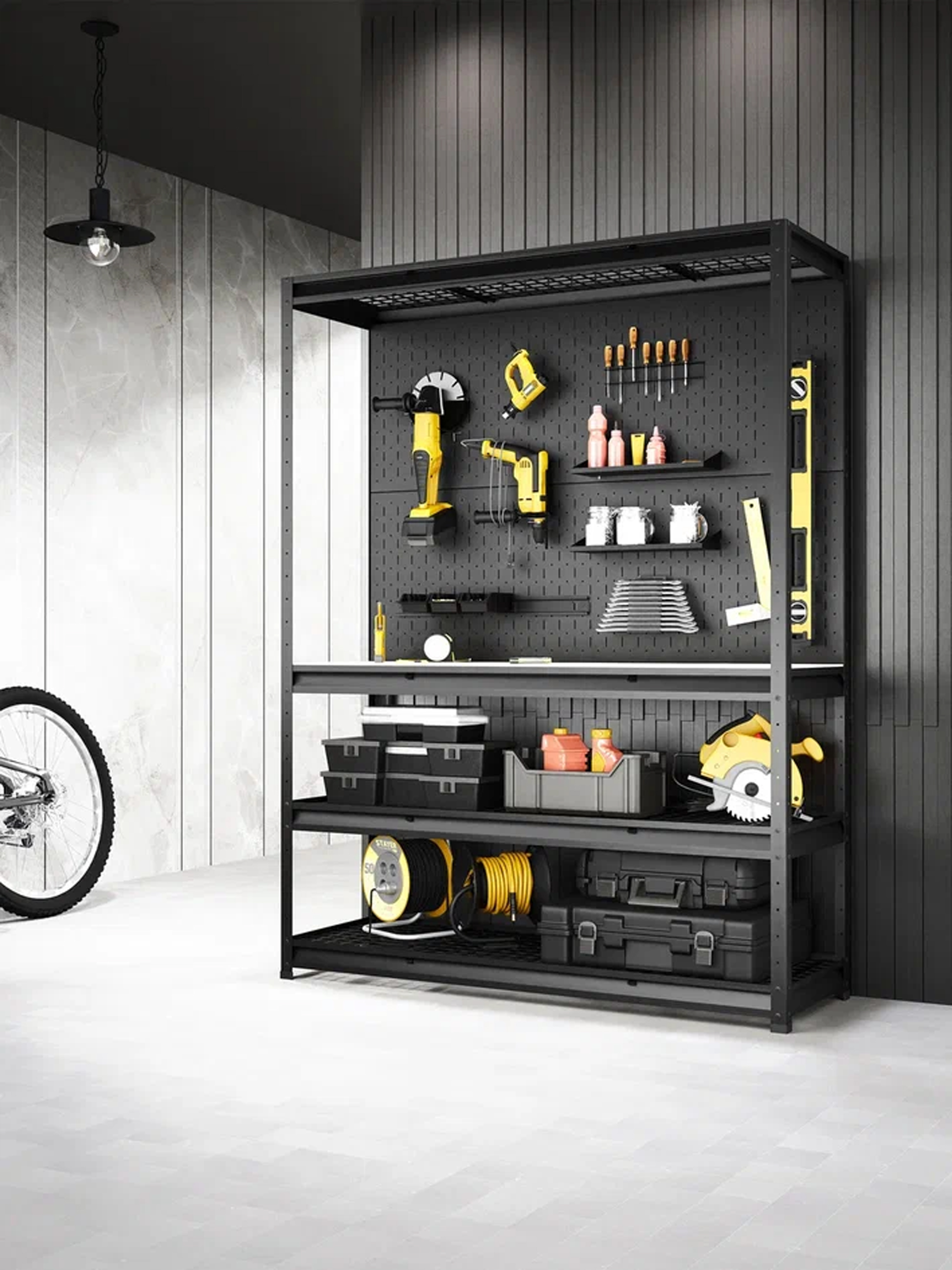 Верстак-стеллаж подходит для организации рабочего пространства в сборочных цехах, на производственных площадках, в гараже или мастерской.